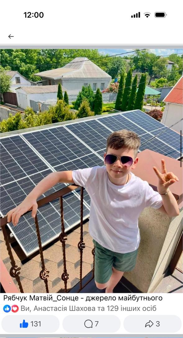 Московка Валерія з фотороботою «Сонячні батареї моєї родини»