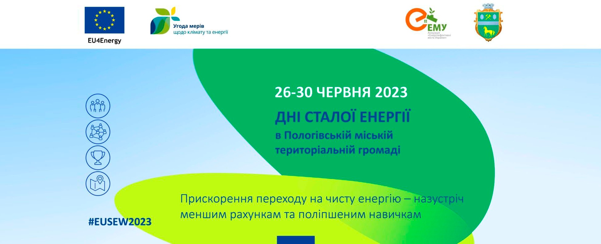 Щорічно Пологівська міська рада на підтримку Європейського тижня сталої енергії проводить «Дні сталої енергії» в Пологівській громаді. Цього року заходи відбудуться з 26 по 30 червня під гаслом «Прискорення переходу до чистої енергії – назустріч меншим рахункам та поліпшеним навичкам».