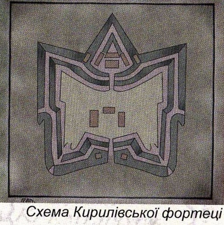 Фортеця була оточена зовнішнім ровом і великим равеліном зі сторони річки для посилення оборонної лінії. Цитадель Кирилівської фортеці мала розміри 160 х 150 метрів. По всьому периметру зовнішнього валу висотою до 4 метрів була бойова площадка.
